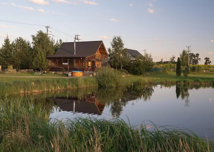 Willa Dom Nad Stawem Jaromierz oferuje bezpłatny prywatny parking oraz taras z widokiem na ogród.